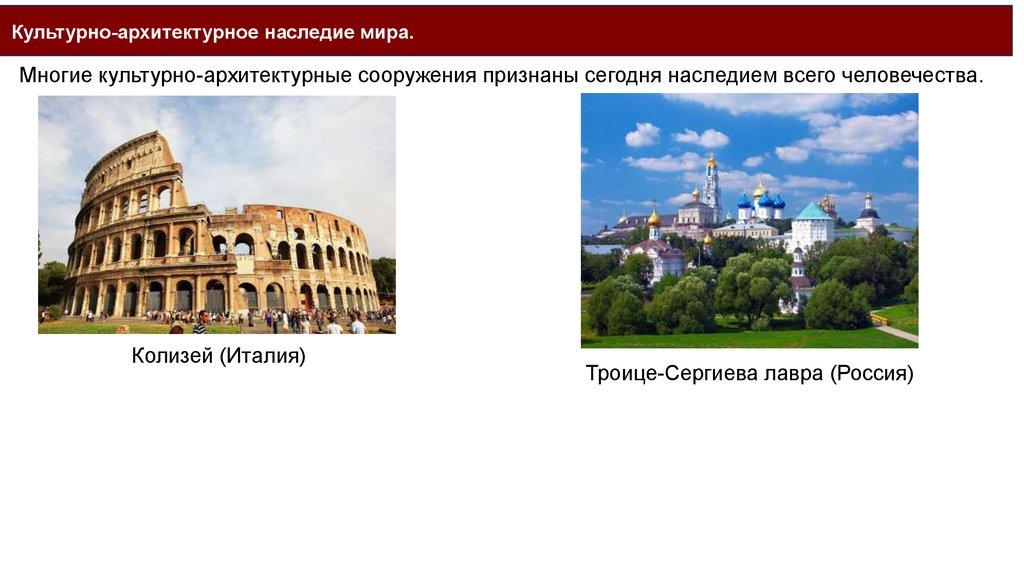 Культурно-архитектурное наследие мира.Многие культурно-архитектурные сооружения признаны сегодня наследием всего человечества.