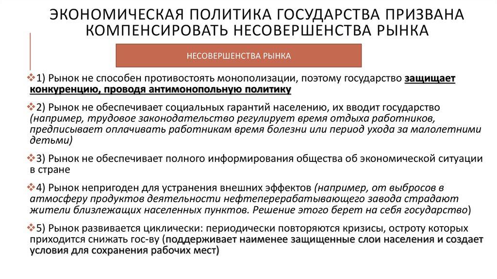 ЭКОНОМИЧЕСКАЯ ПОЛИТИКА ГОСУДАРСТВА ПРИЗВАНАКОМПЕНСИРОВАТЬ НЕСОВЕРШЕНСТВА РЫНКА