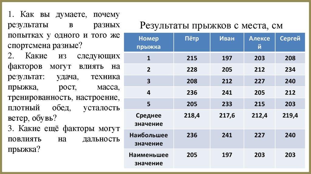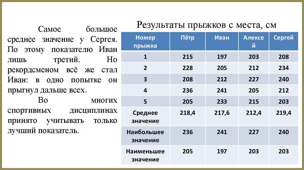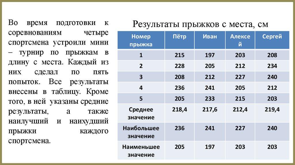 Результаты прыжков с места, см