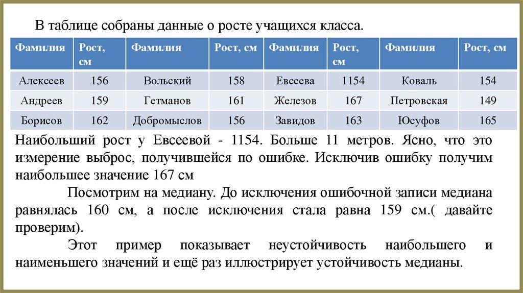 того, в ней указаны средние