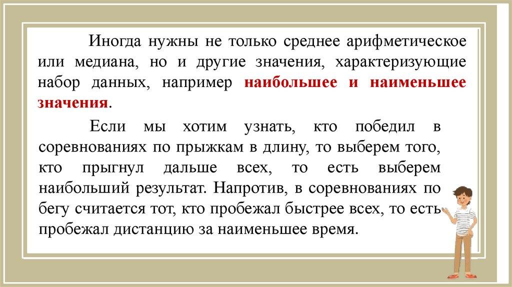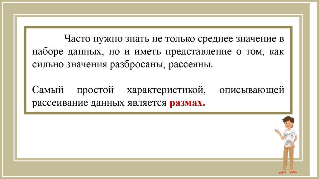 Иногда нужны не только среднее арифметическоеили медиана, но и другие значения, характеризующие