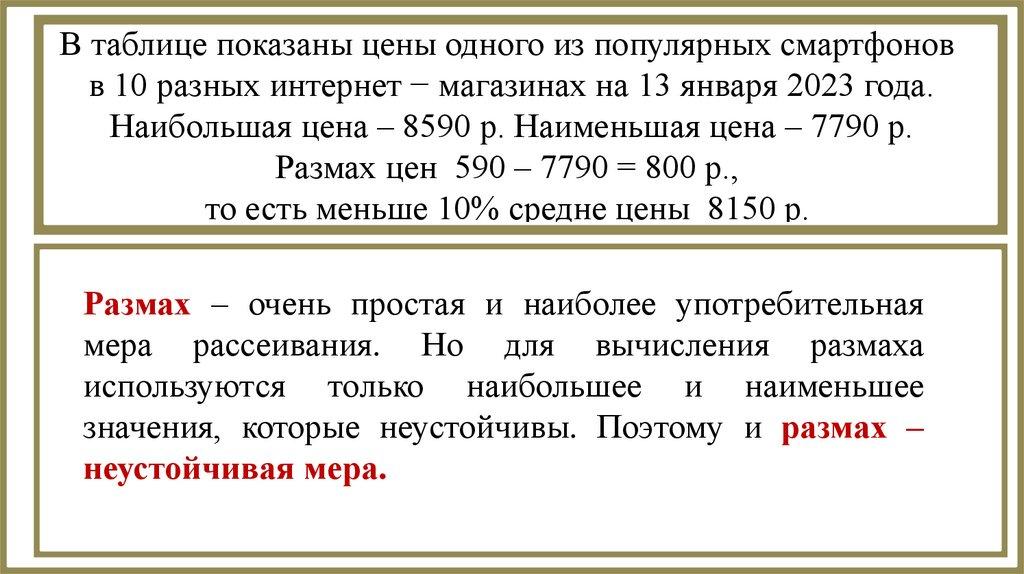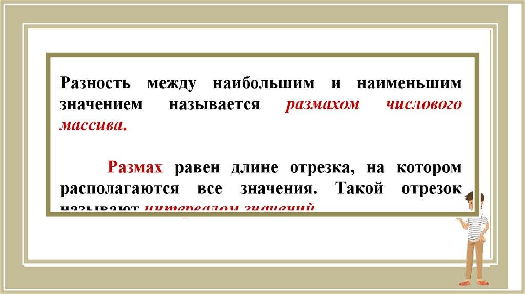 Наибольшее и наименьшеезначения. Размах