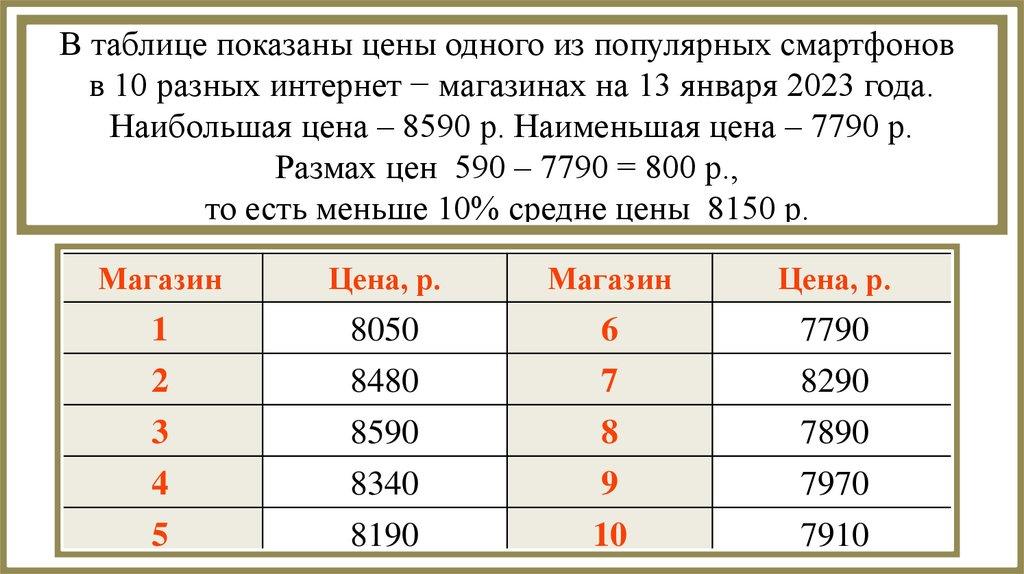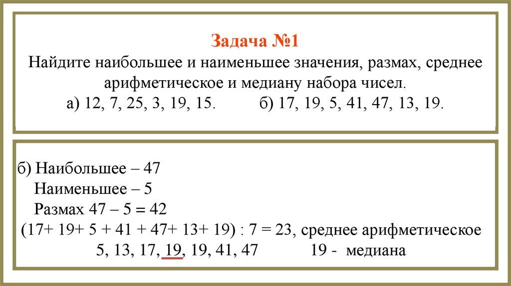 арифметическое, размах и медиану