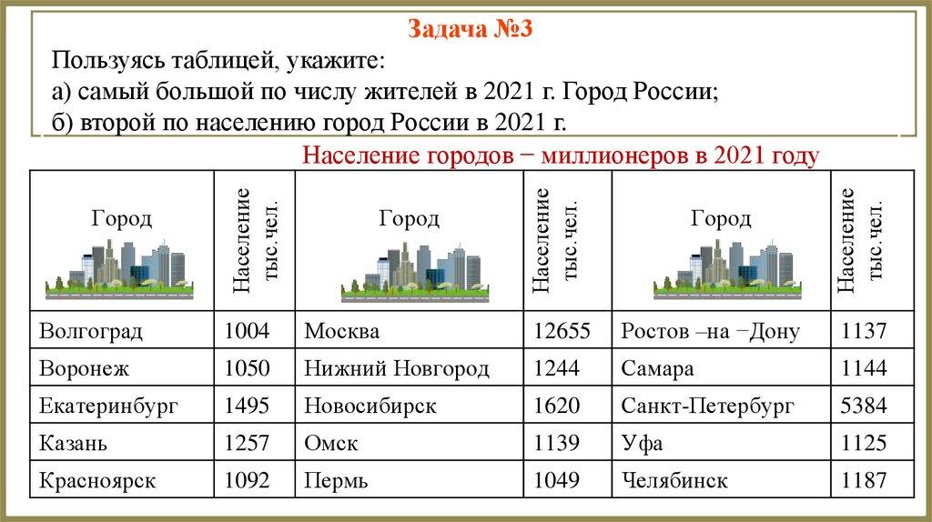 а) самый большой по числу жителей в 2021 г. Город России;