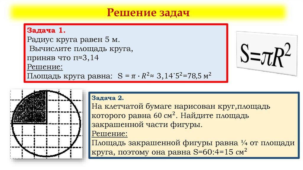 Вычислите площадь круга,