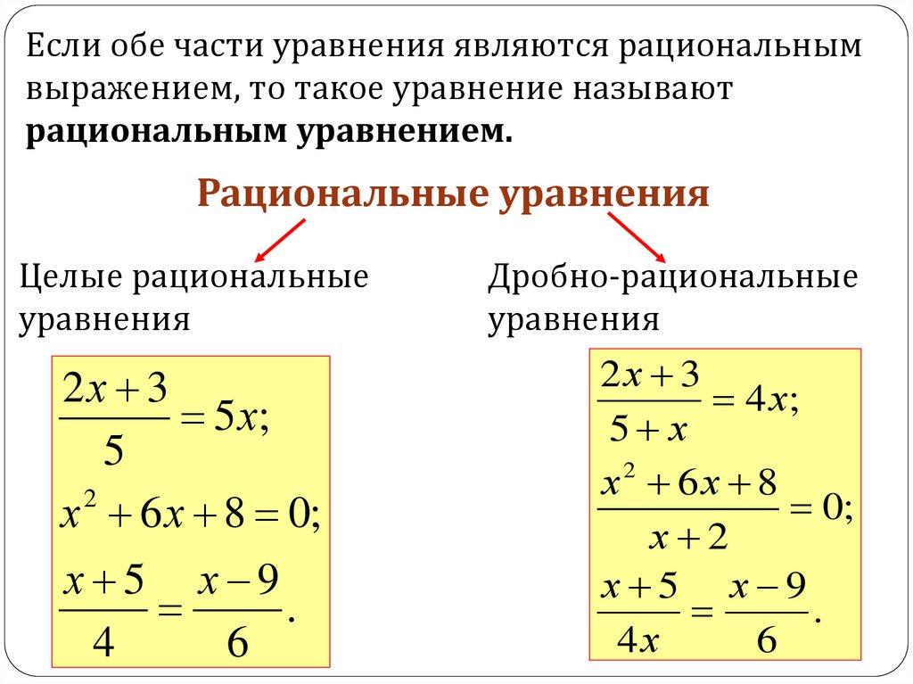 Если обе части уравнения являются рациональнымвыражением, то такое уравнение называют