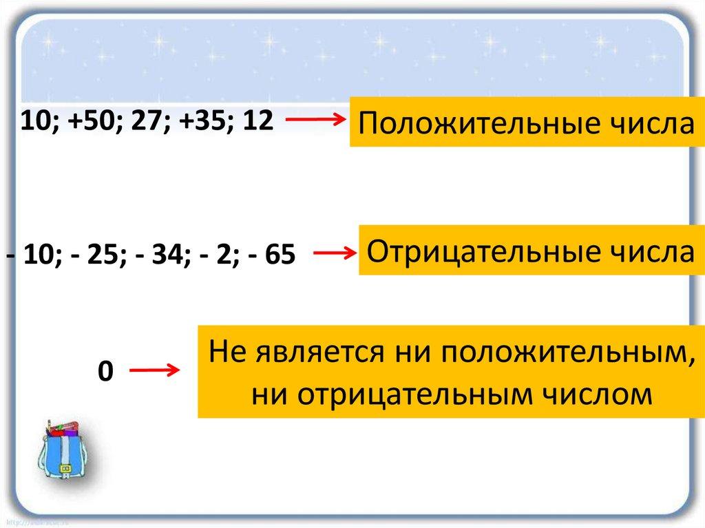10; +50; 27; +35; 12Положительные числа