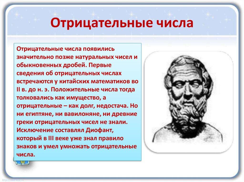 II в. до н. э. Положительные числа тогда