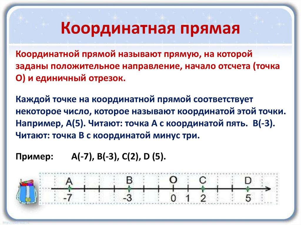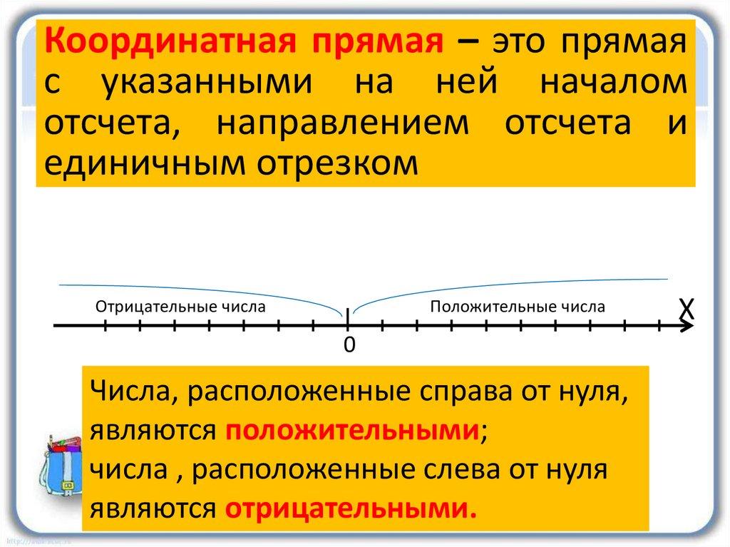 Координатная прямая – это прямаяс указанными на ней началом