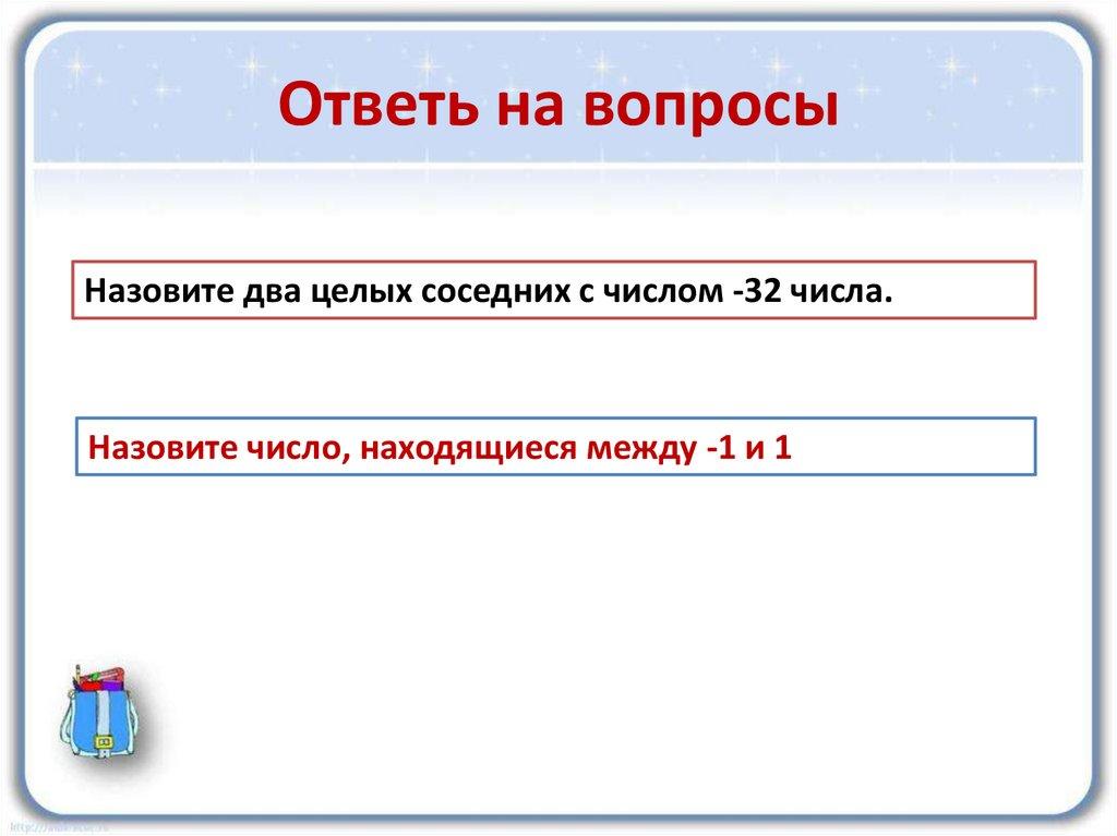 Ответь на вопросыНазовите два целых соседних с числом -32 числа.