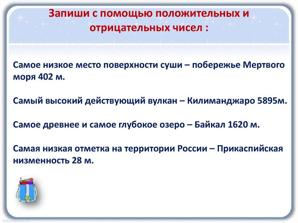 Запиши с помощью положительных иотрицательных чисел :