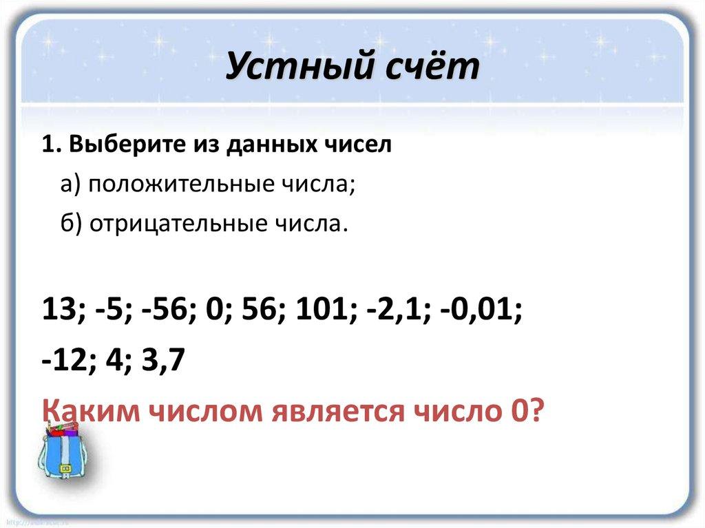 Устный счёт1. Выберите из данных чисел