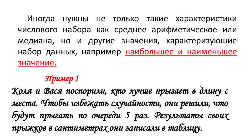 Иногда нужны не только такие характеристикичислового набора как среднее арифметическое или