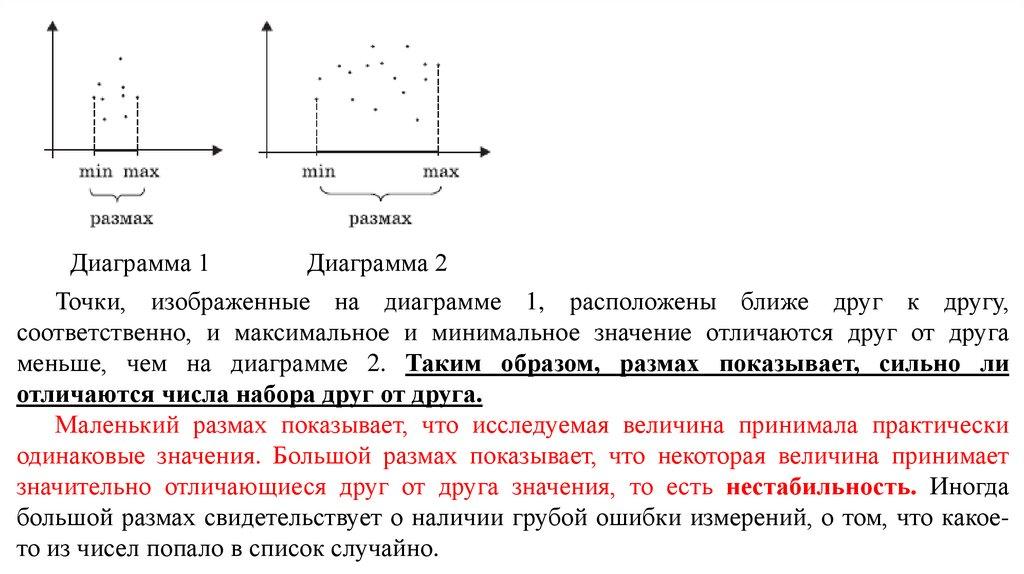 меньше, чем на диаграмме 2. Таким образом, размах показывает, сильно ли