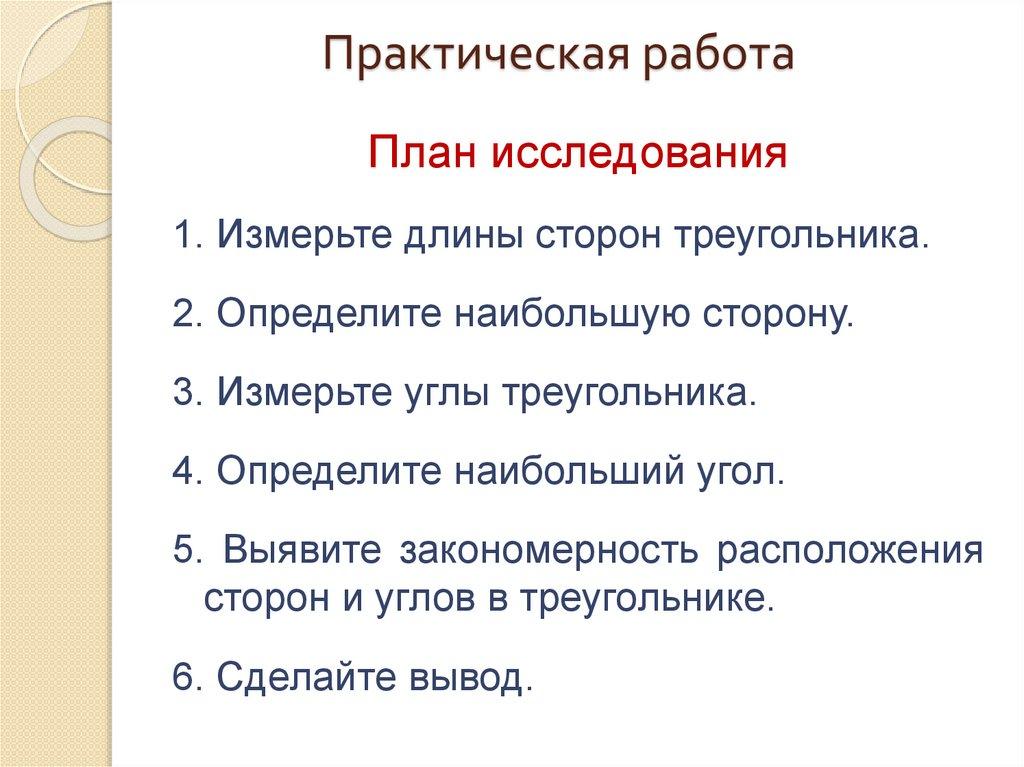 Практическая работаПлан исследования