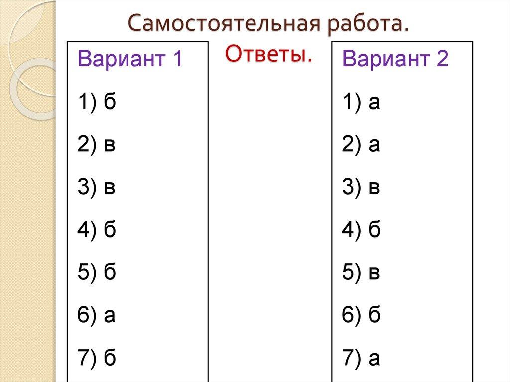 Самостоятельная работа.Ответы. Вариант 2