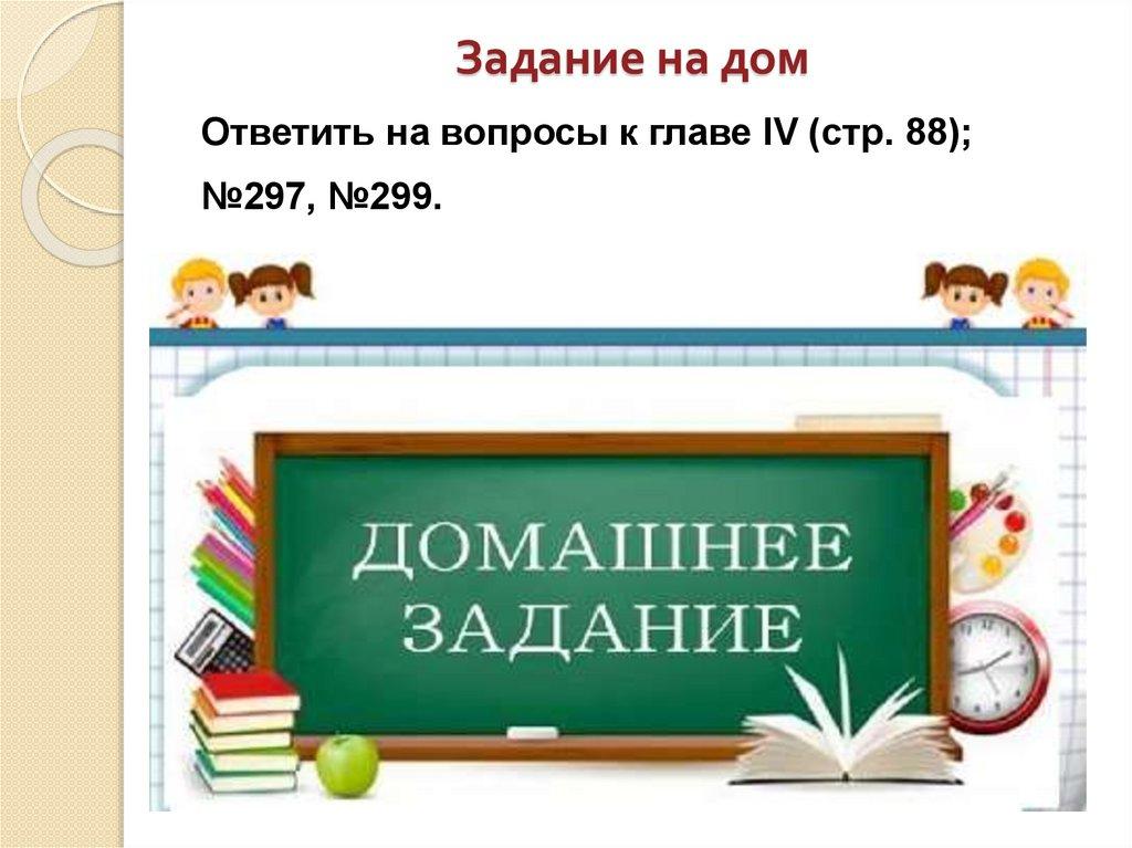 Задание на домОтветить на вопросы к главе IV (стр. 88);