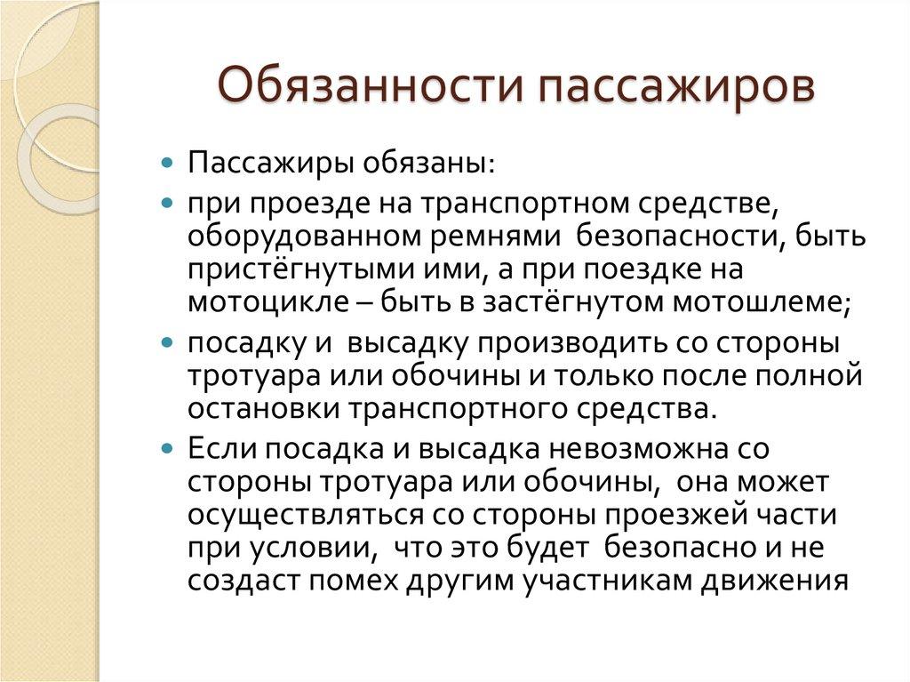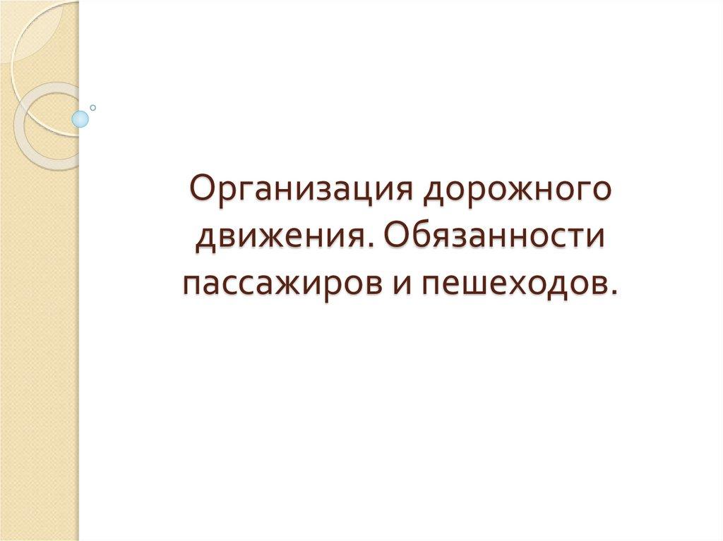 Организация дорожного движения. Обязанности пассажиров и пешеходов