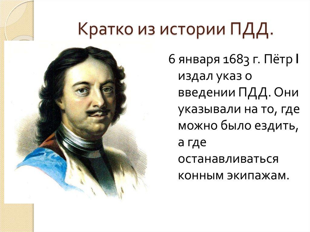 Кратко из истории ПДД.6 января 1683 г. Пётр I