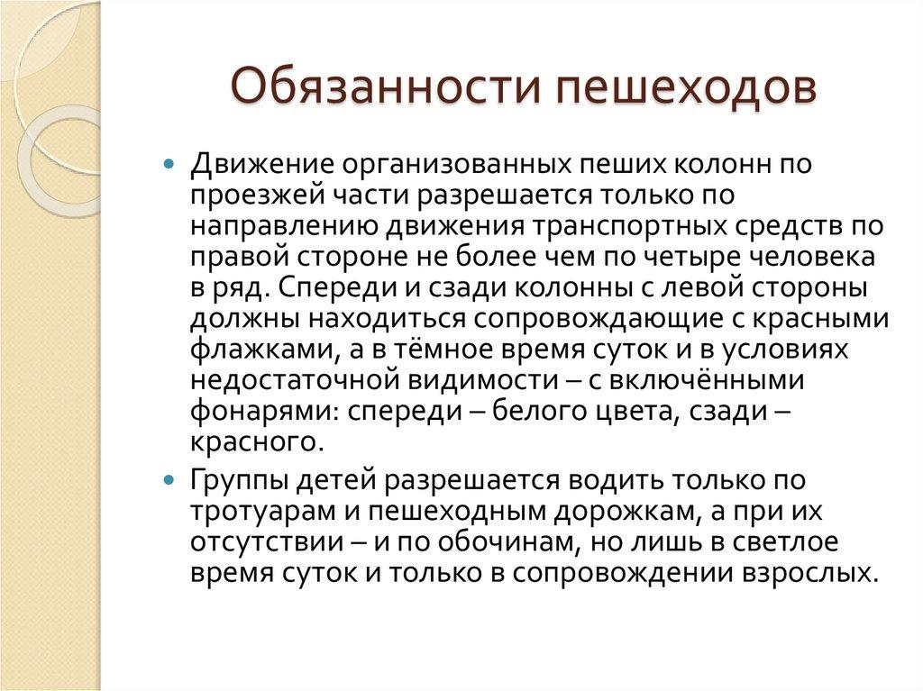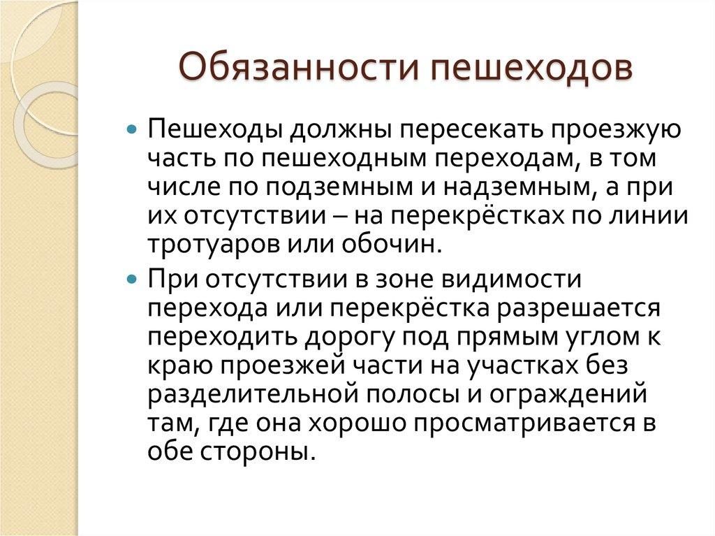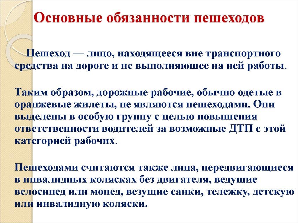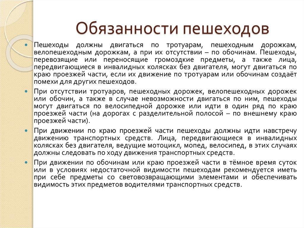 Основные обязанности пешеходовПешеход — лицо, находящееся вне транспортного