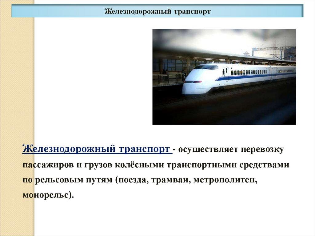 Железнодорожный транспортЖелезнодорожный транспорт - осуществляет перевозку