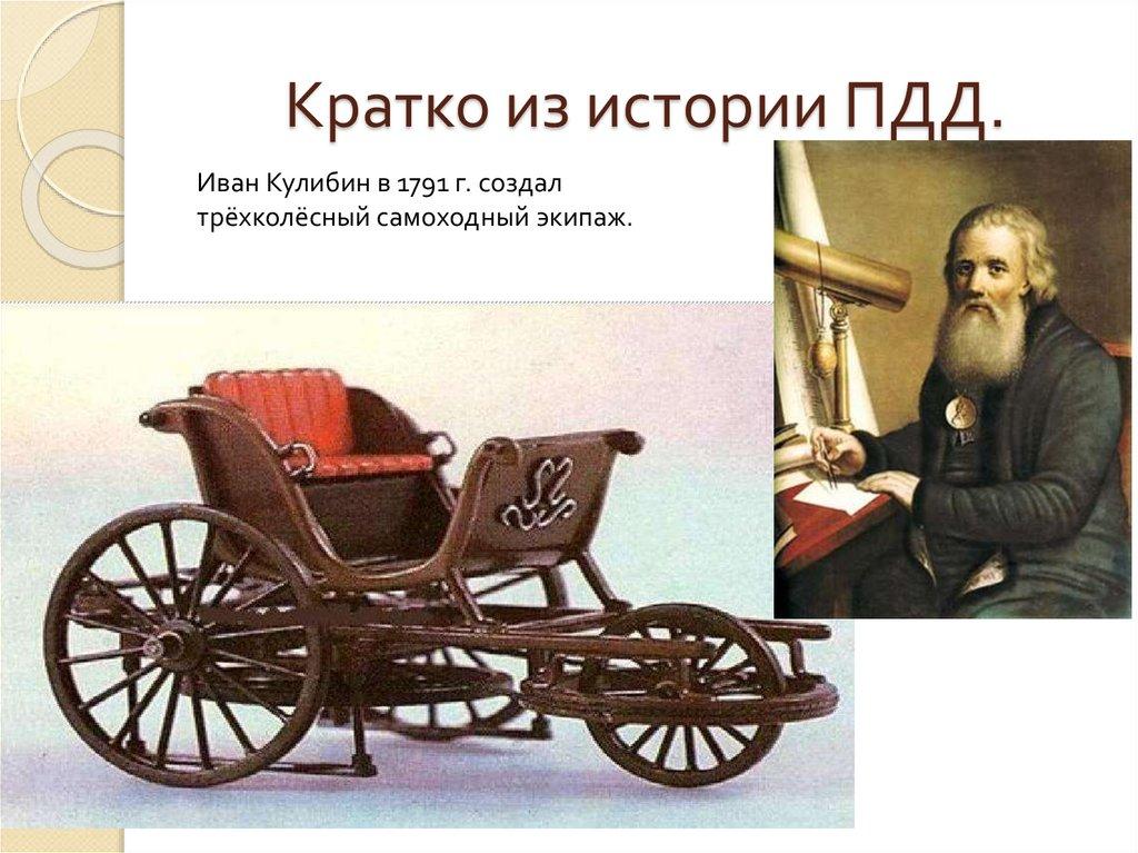 Кратко из истории ПДД.Иван Кулибин в 1791 г. создал