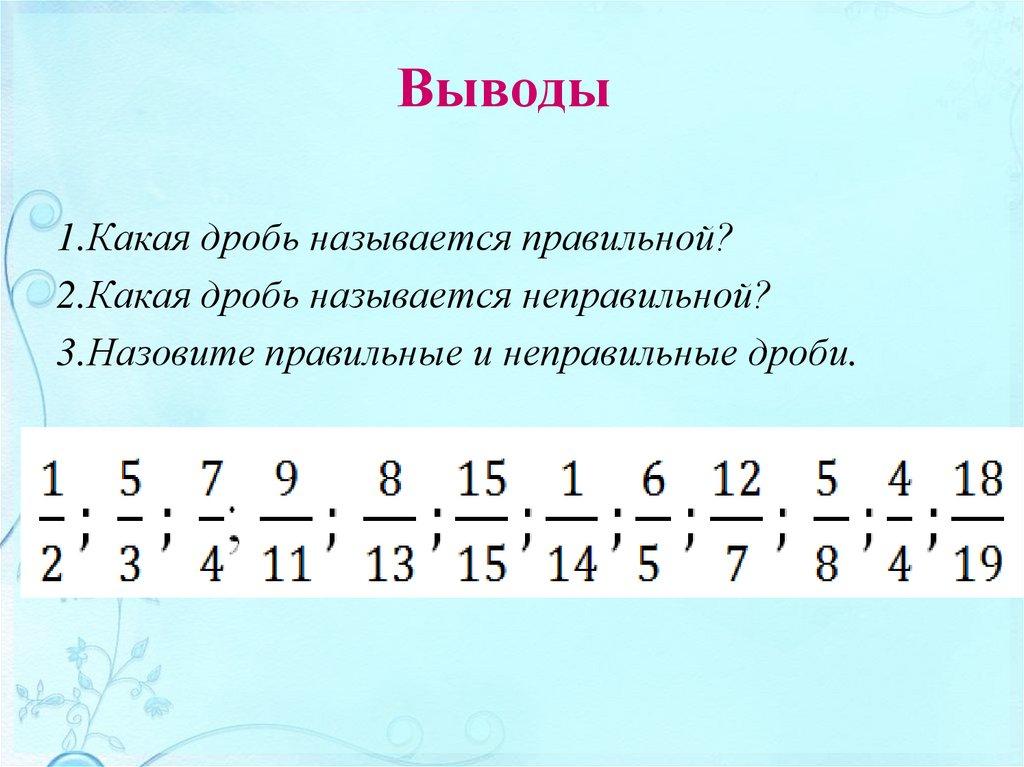 Выводы1.Какая дробь называется правильной?