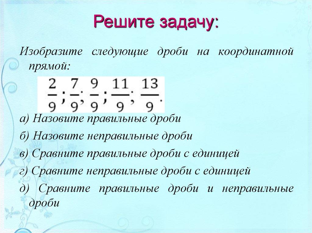 Решите задачу:Изобразите следующие дроби на координатной
