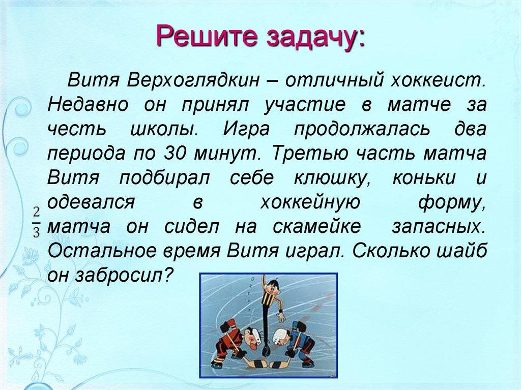 Решите задачу:Витя Верхоглядкин – отличный хоккеист.
