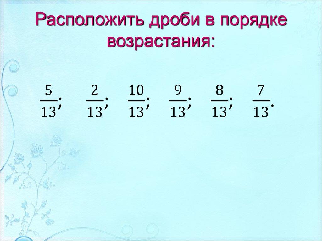 Расположить дроби в порядкевозрастания: