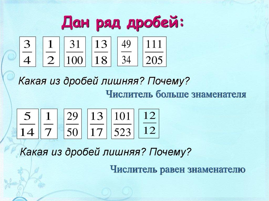 Какая из дробей лишняя? Почему?