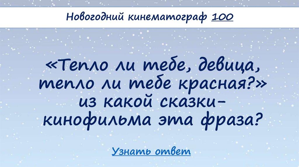 Новогодний кинематограф 100«Тепло ли тебе, девица,