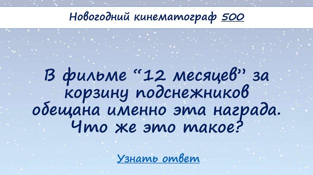 Новогодний кинематограф 500В фильме “12 месяцев” за