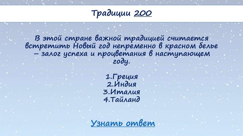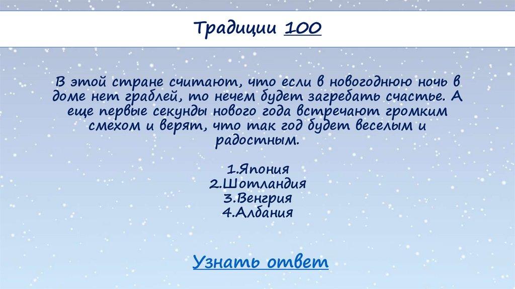 Традиции 100В этой стране считают, что если в новогоднюю ночь в