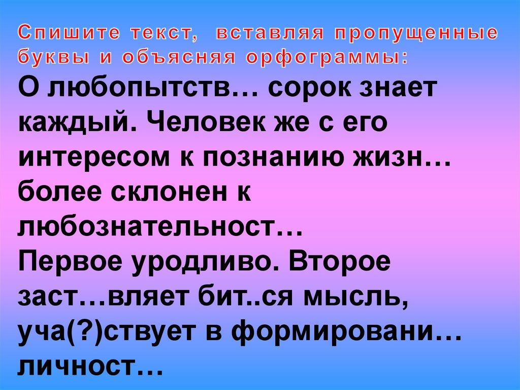 О любопытствЕ сорок знаеткаждый. Человек же с его