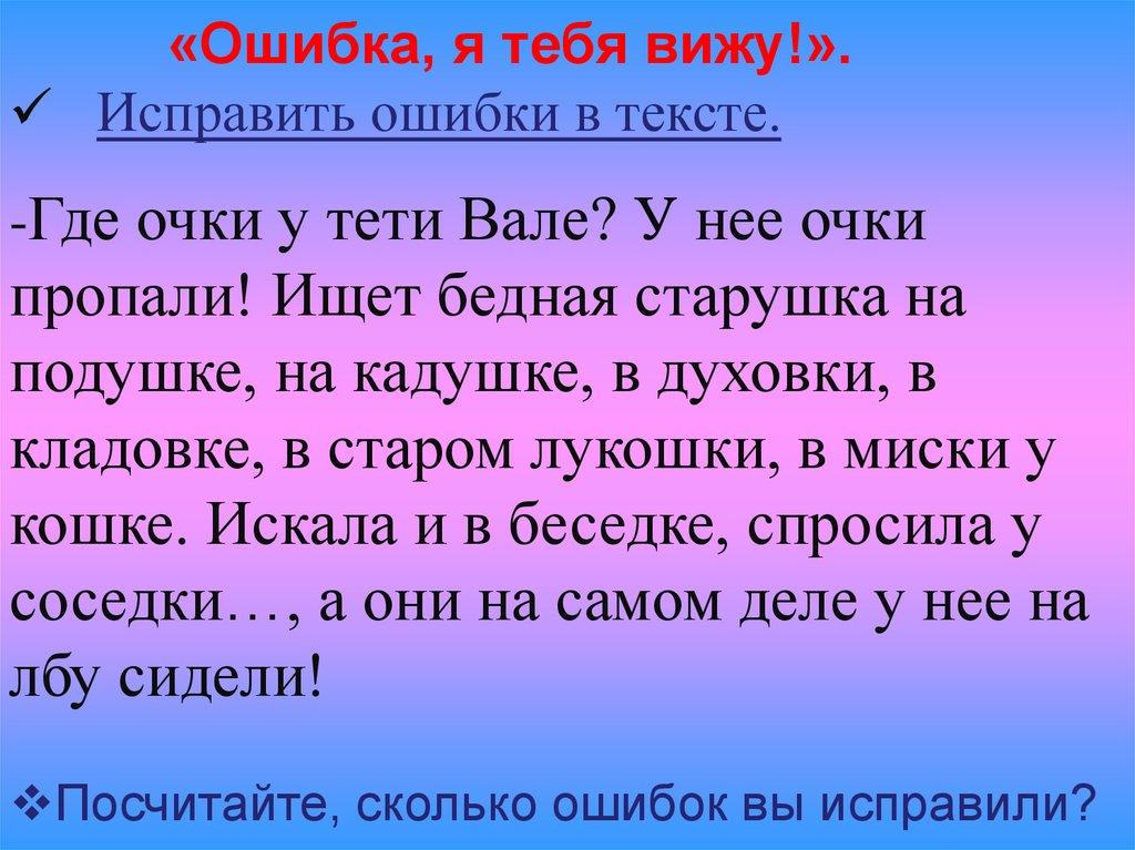 «Ошибка, я тебя вижу!».Исправить ошибки в тексте.