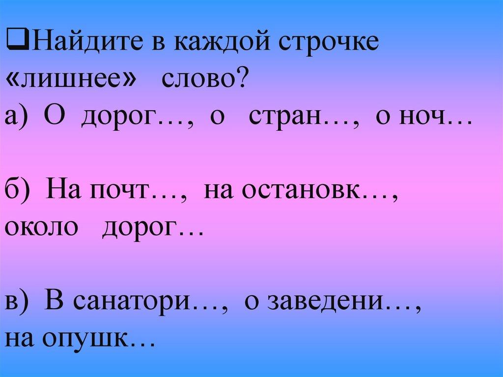 Найдите в каждой строчке«лишнее» слово?