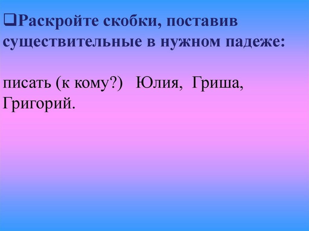 писать (к кому?) Юлия, Гриша,