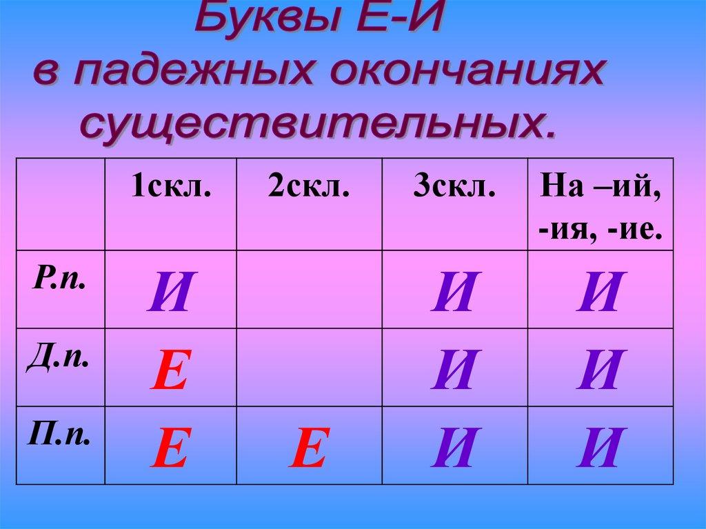 окончаниях существительных?