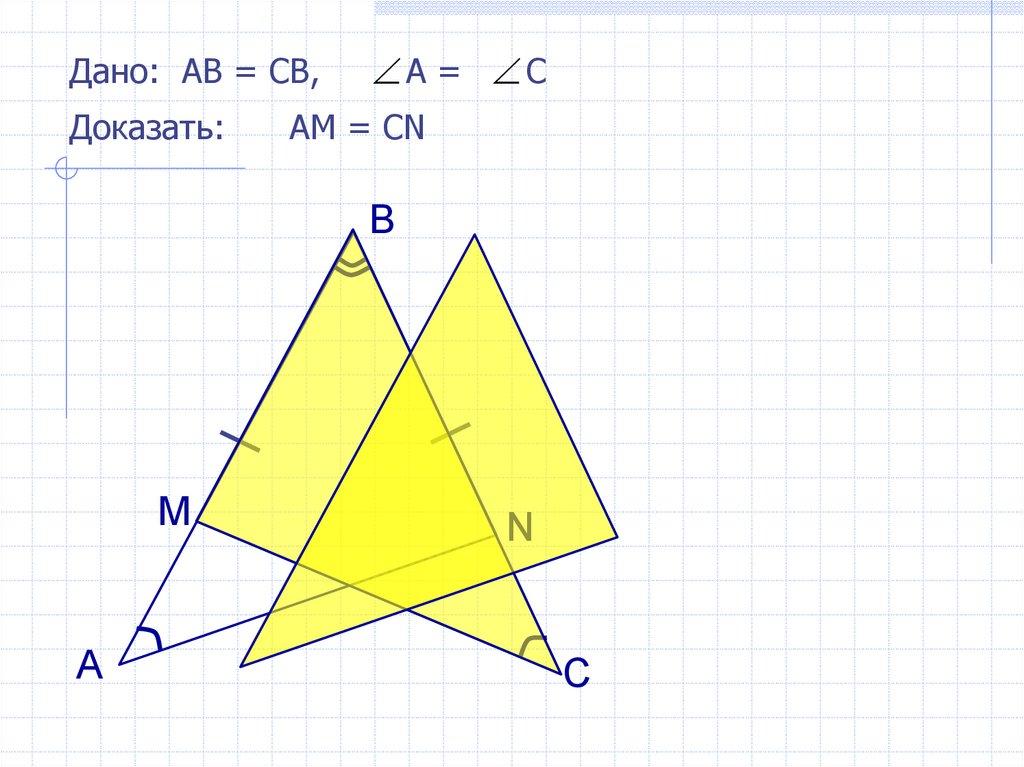 Дано: АВ = СВ,Доказать:
