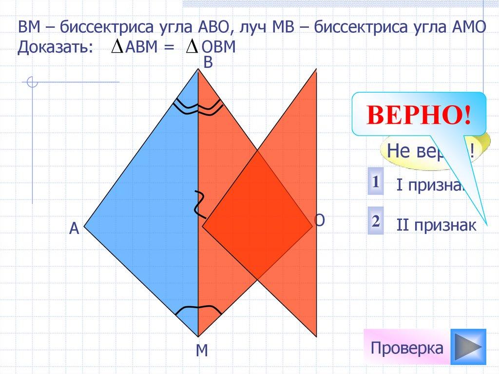 ВM – биссектриса угла АВО, луч МВ – биссектриса угла АМОДоказать: АВМ = ОВМ