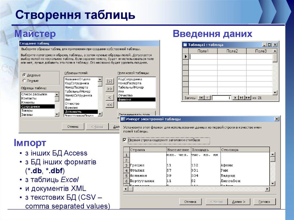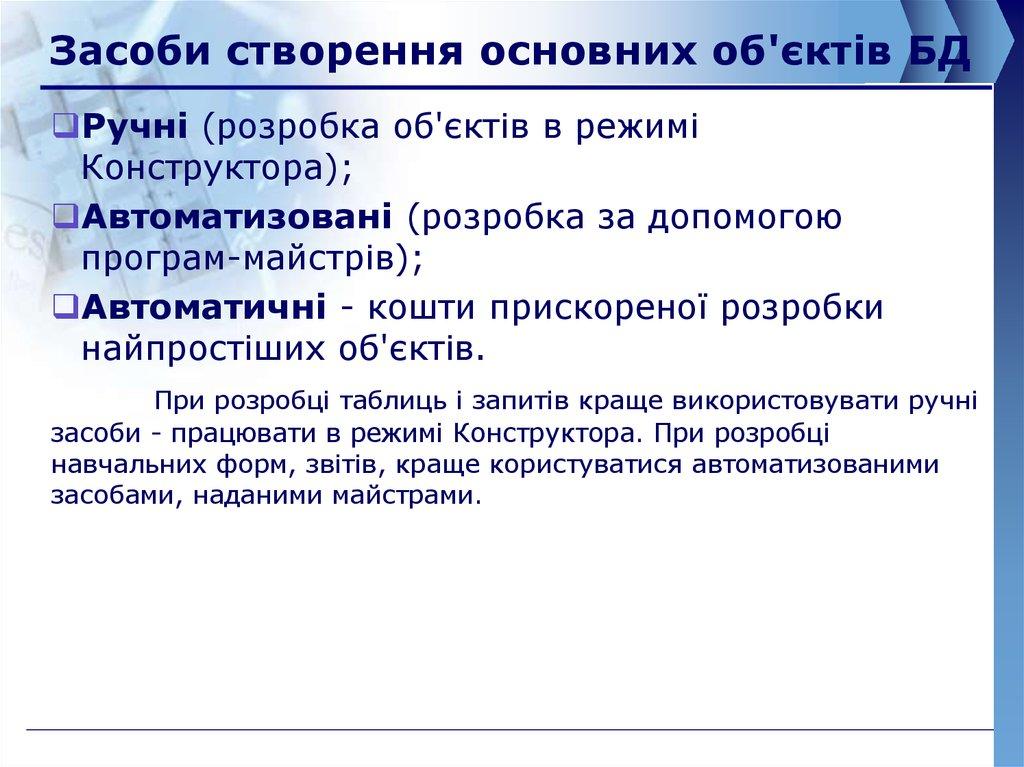 1. Системи управління базами даних Access