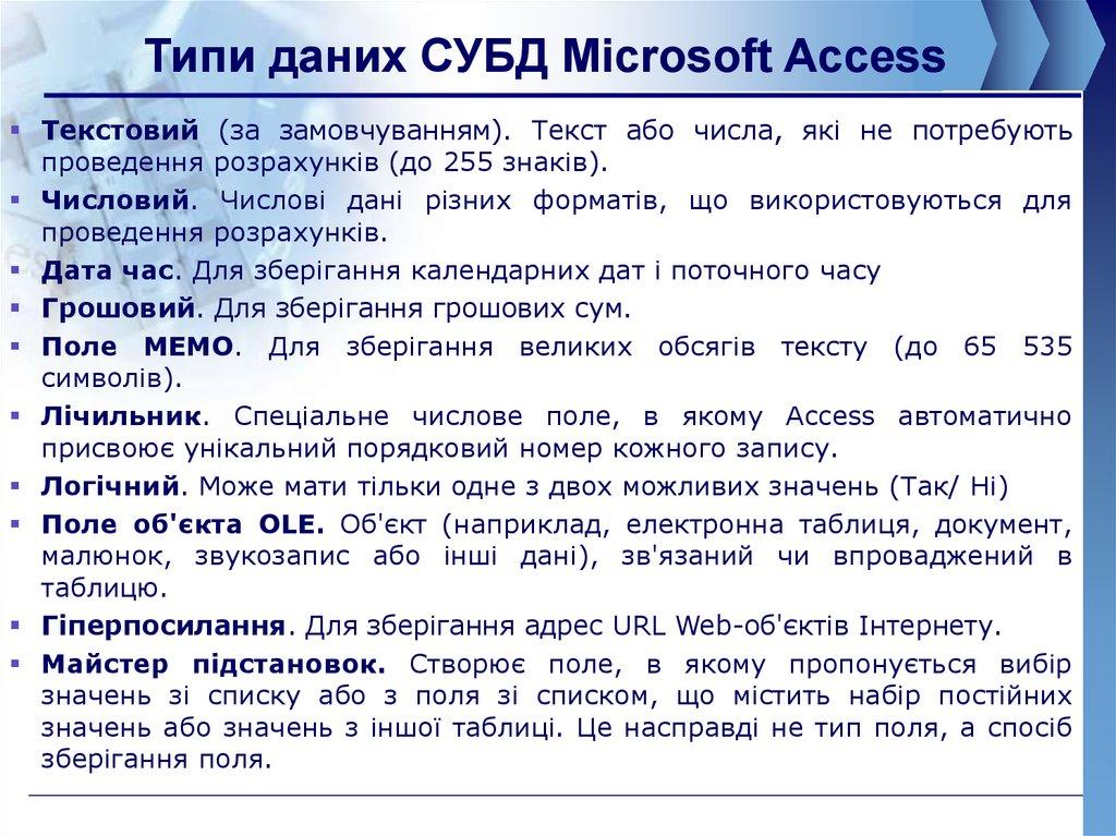Системи управління базами даних Access