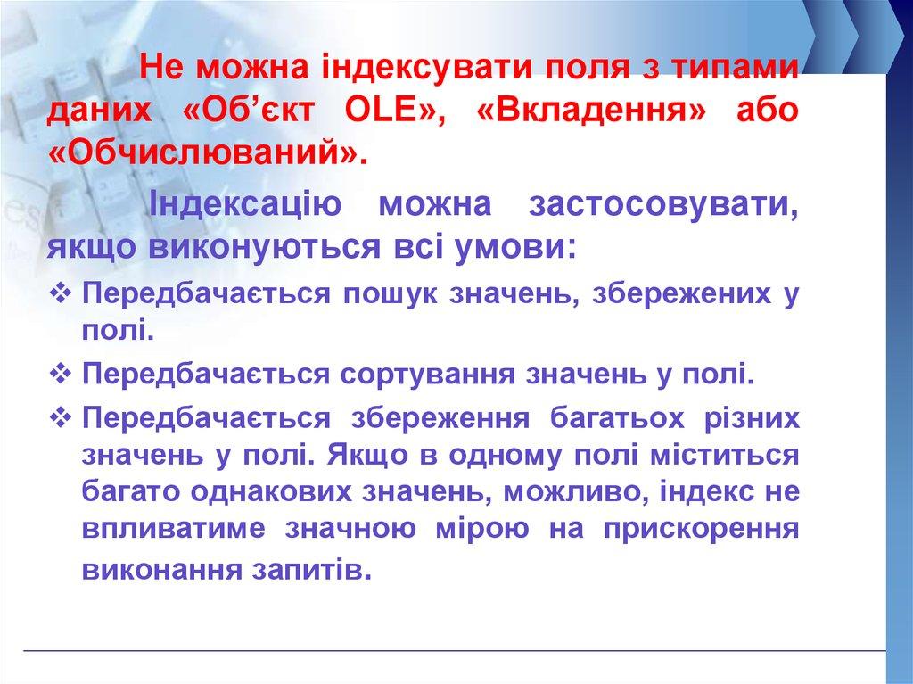 в індексованих полях виключаються