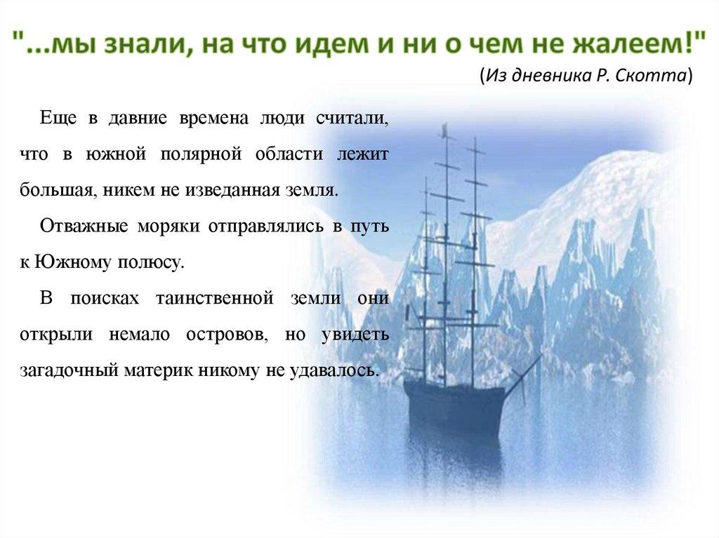 (Из дневника Р. Скотта)Еще в давние времена люди считали,
