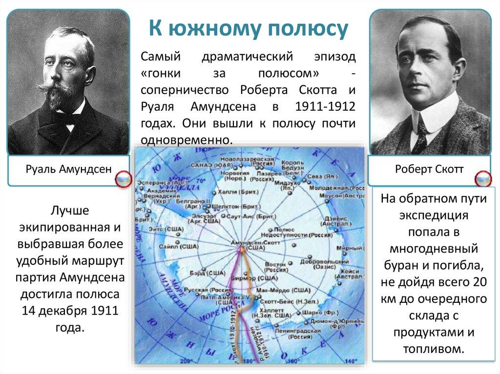 Экспедиции Амундсена и Скотта первыми побывали на