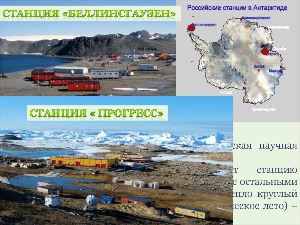 На территории Антарктиды расположены пять российских