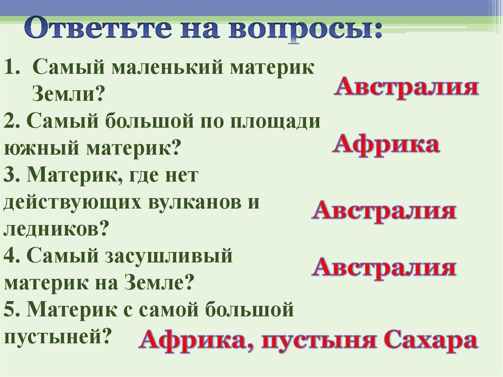 1. Самый маленький материкЗемли?