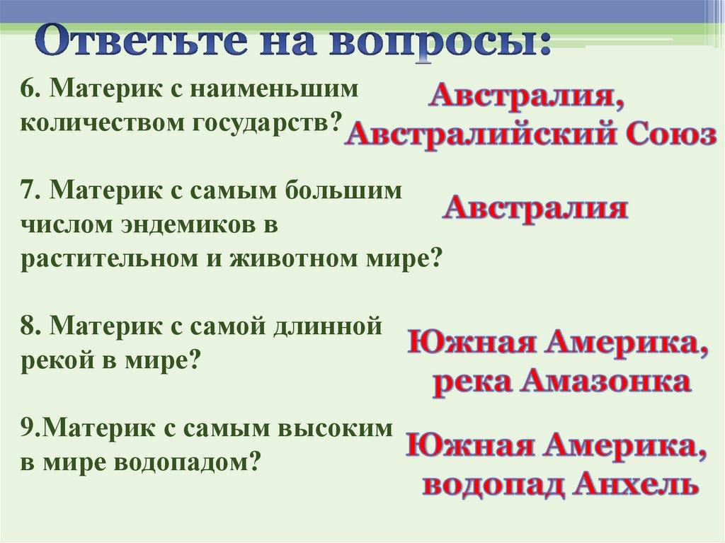 8. Материк с самой длинной