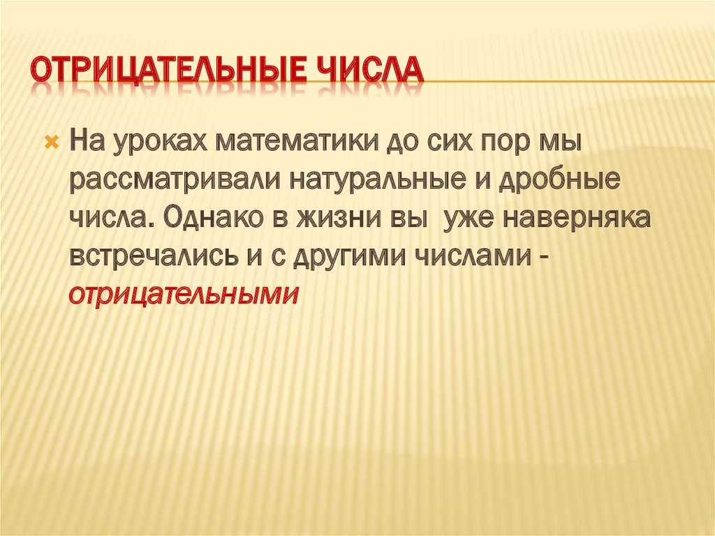 ОТРИЦАТЕЛЬНЫЕ ЧИСЛАНа уроках математики до сих пор мы